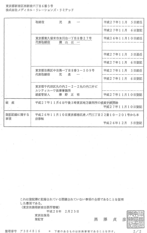 なお、オプティファクターはアーツ証券に出資をしており、アーツ証券の取締役として児泉一の名前もアーツ証券の履歴事項全部証明書には書かれている。
